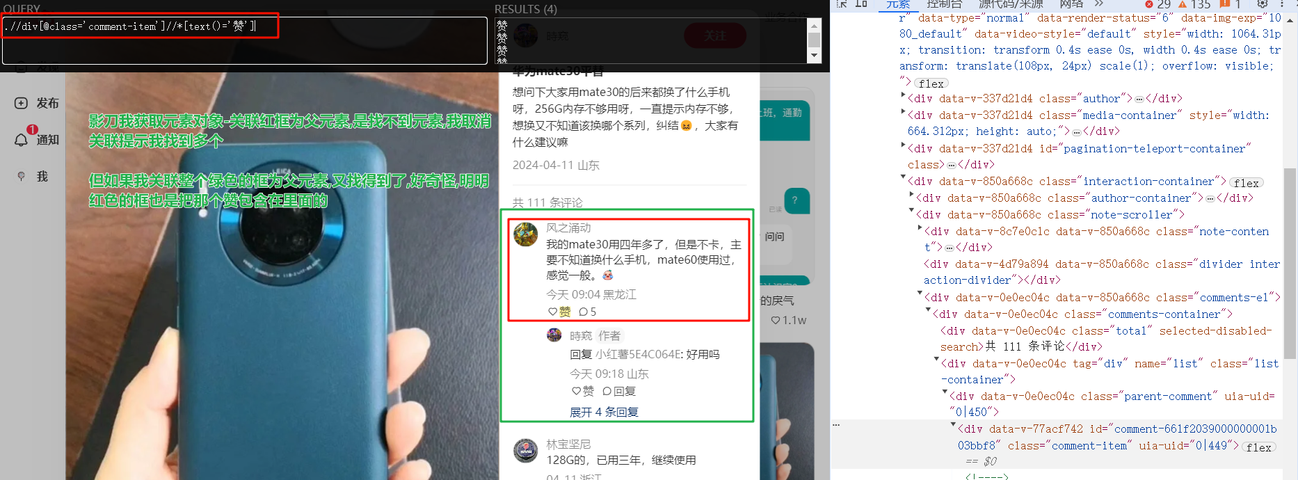 这个xpath的.//div[@class='comment-item']//*[text()='赞'],的class=comment-item就是红框所在的层级,是不是和这个有关?