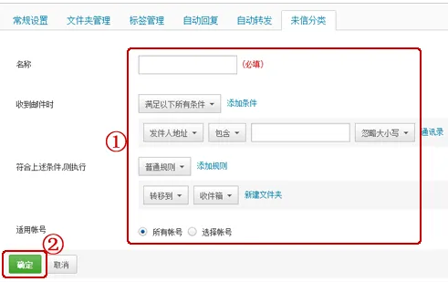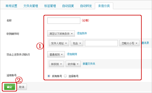 使用来信分类,您可以根据多种条件,设定自定义分类规则: