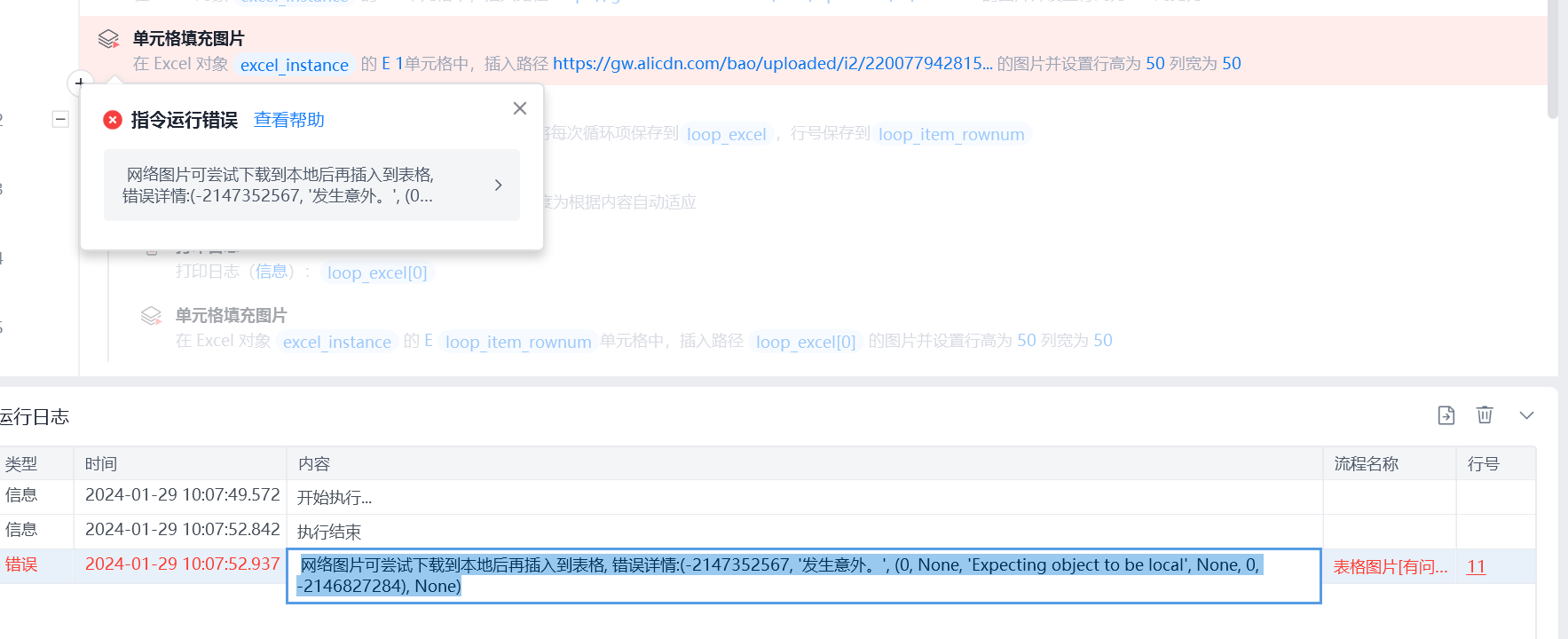 路径1图片提示“不能链接这种类型的文件”_"网络图片可尝试下载到本地后再插入到表格, 错误详情:(-2147352567, '发生意外。', (0, None, 'Expecting object to be local', None, 0, -2146827284), None)"