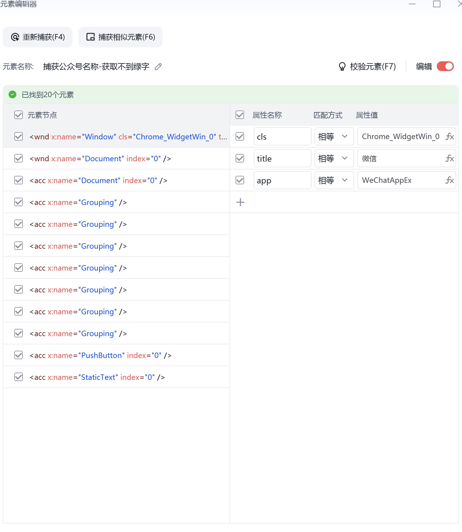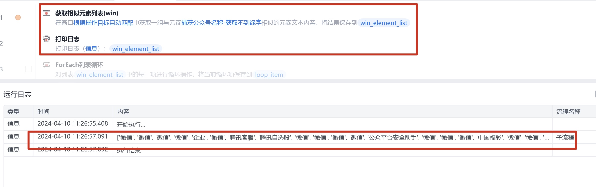 流程我是这样写,获取只能取到绿字部分,(比如:微信团队,只获取到微信)不知道是什么原因?求大神们帮帮解决,苦恼了好久