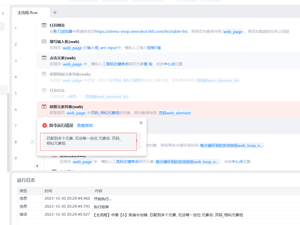 相似元素组 指令执行失败