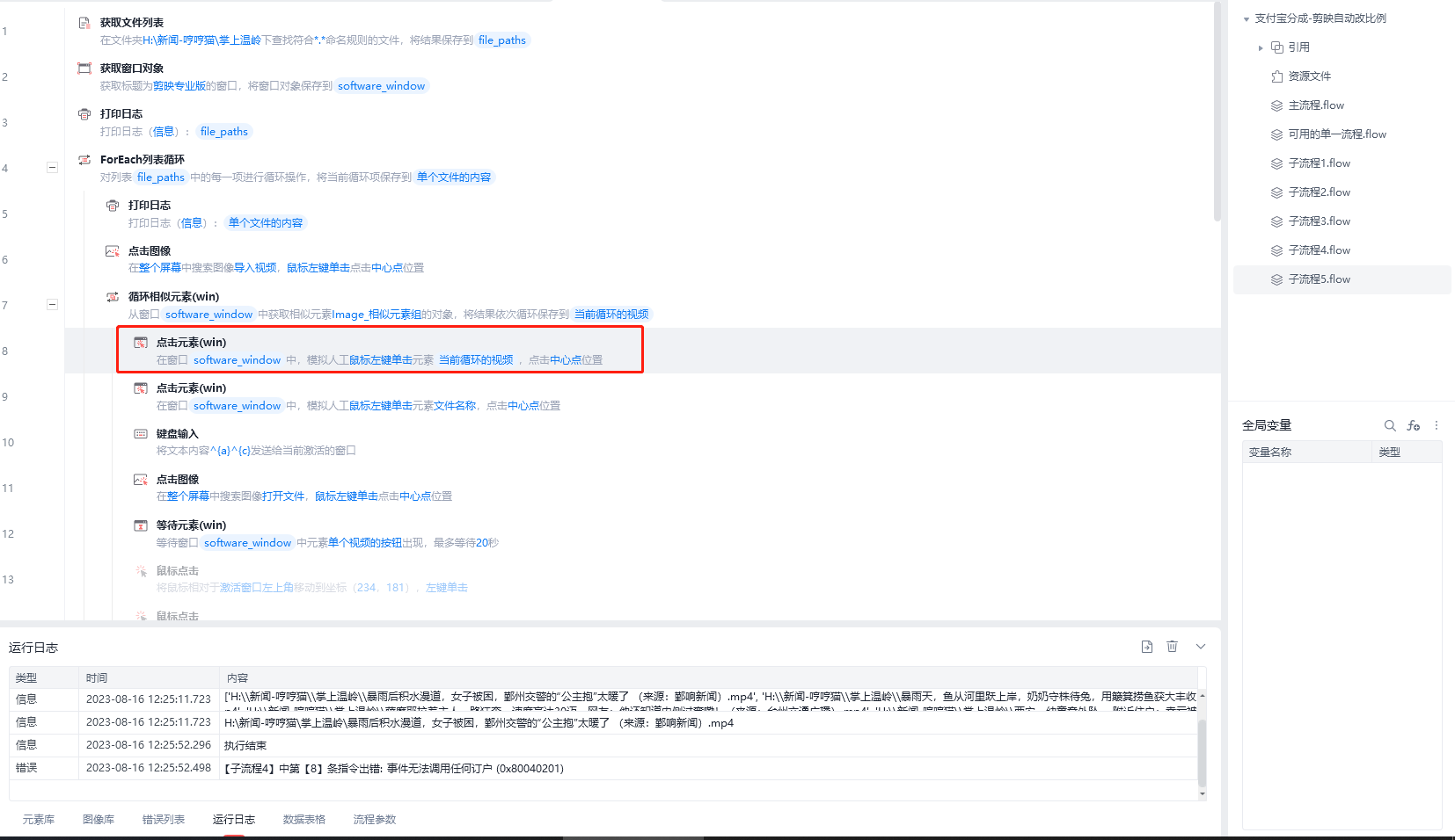 电脑版剪映,循环相似元素第一次可以正常运行,第二次提示:事件无法调用任何订户(0x80040201)