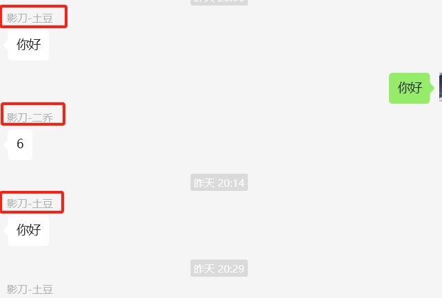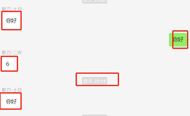 解决方案1:关联元素判断人名,若关联元素不存在,则为自己发的信息