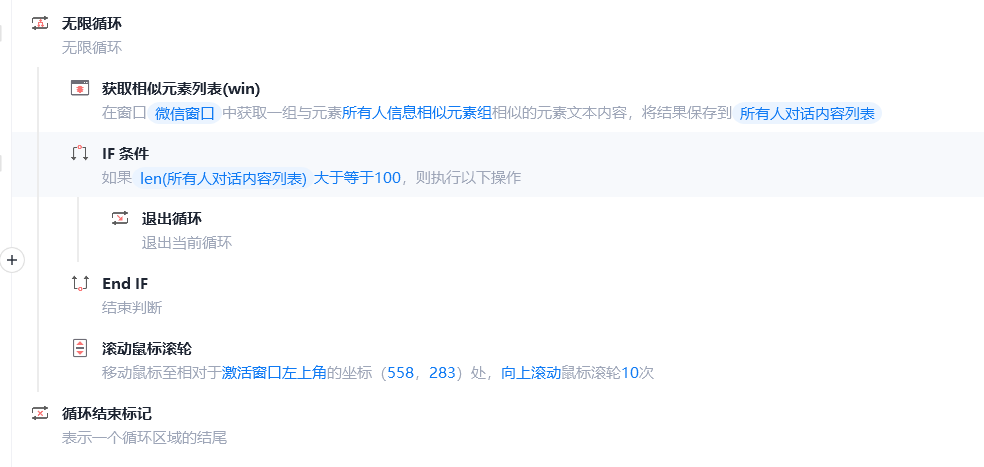 一、滚动鼠标加载100条信息(此处以微信为例,钉钉,飞书,企微等皆可这样操作)