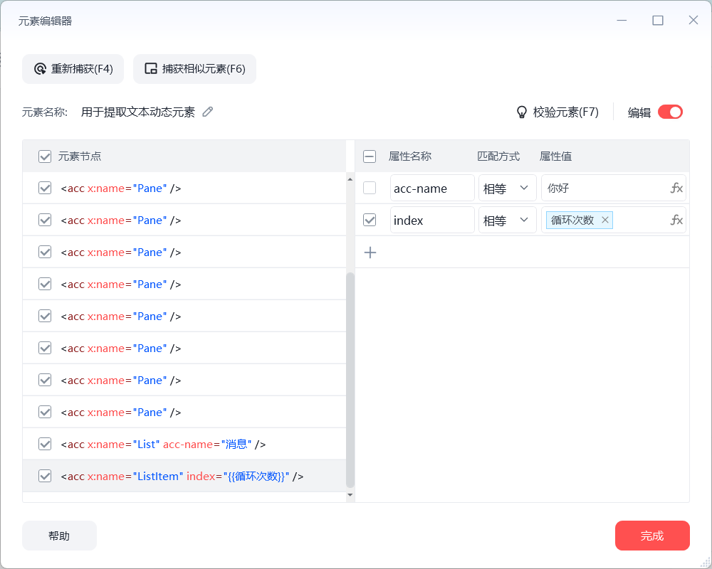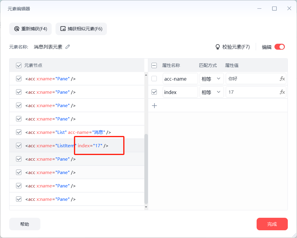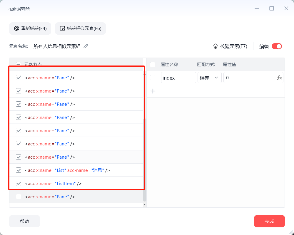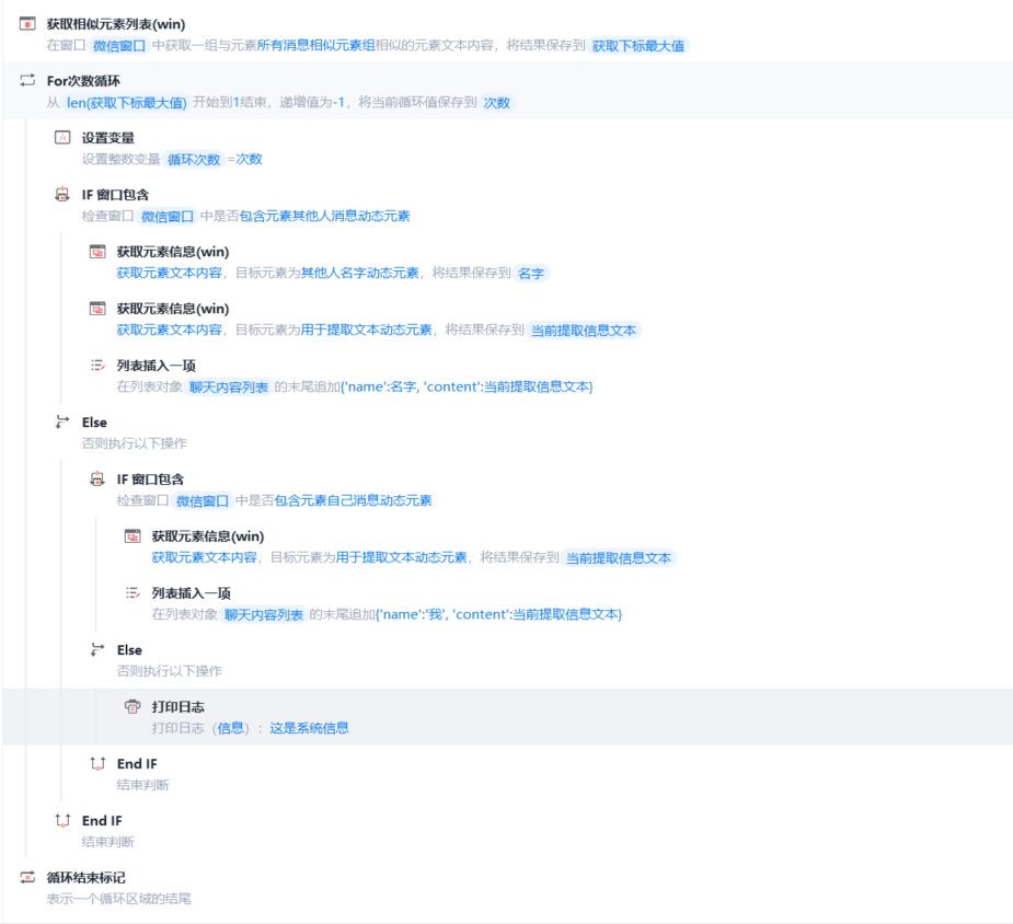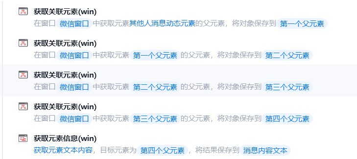 到Listltem层级可以直接提取文本信息,但会获取到系统的时间,到下一层级(Pane)则可以只获取到信息内容,不获取到系统时间,