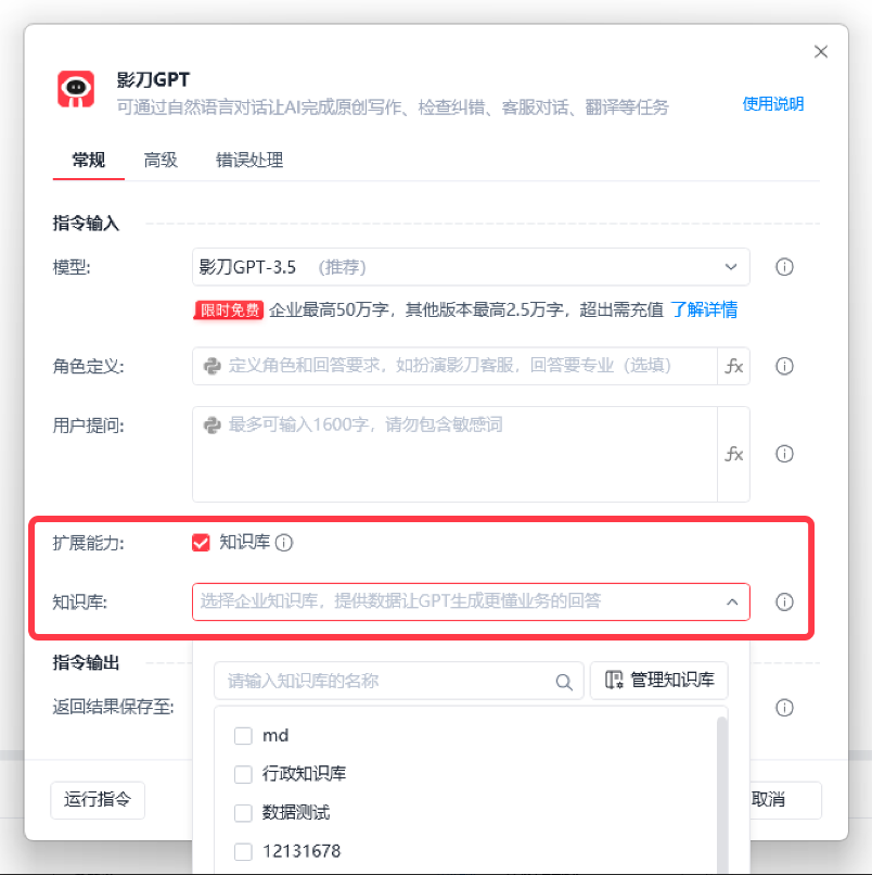 并且影刀GPT指令最大可支持输入1600字!