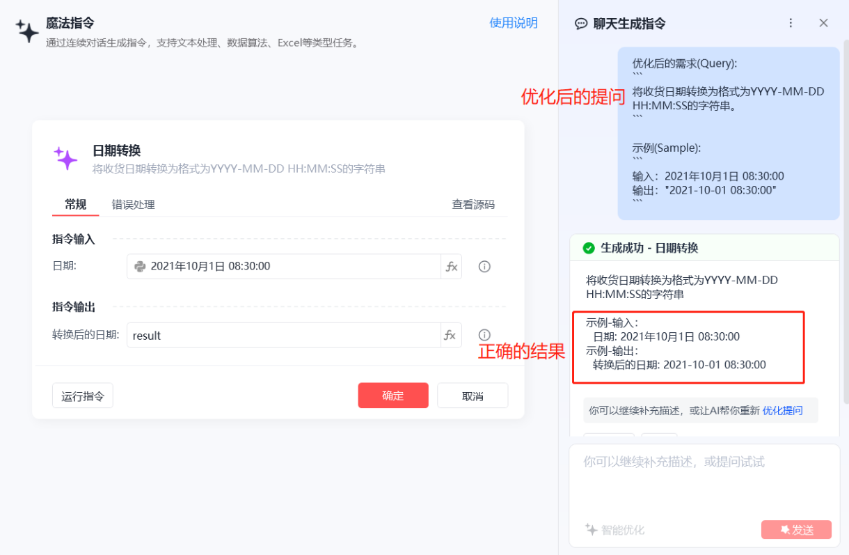 通过对大量用户反馈分析,我们发现清晰完整的提问能极大提升指令生成的准确性。