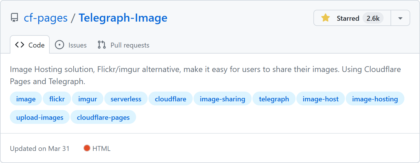 谷歌搜索github上图片托管(image-host)的相关话题,发现Telegraph-Image这个项目