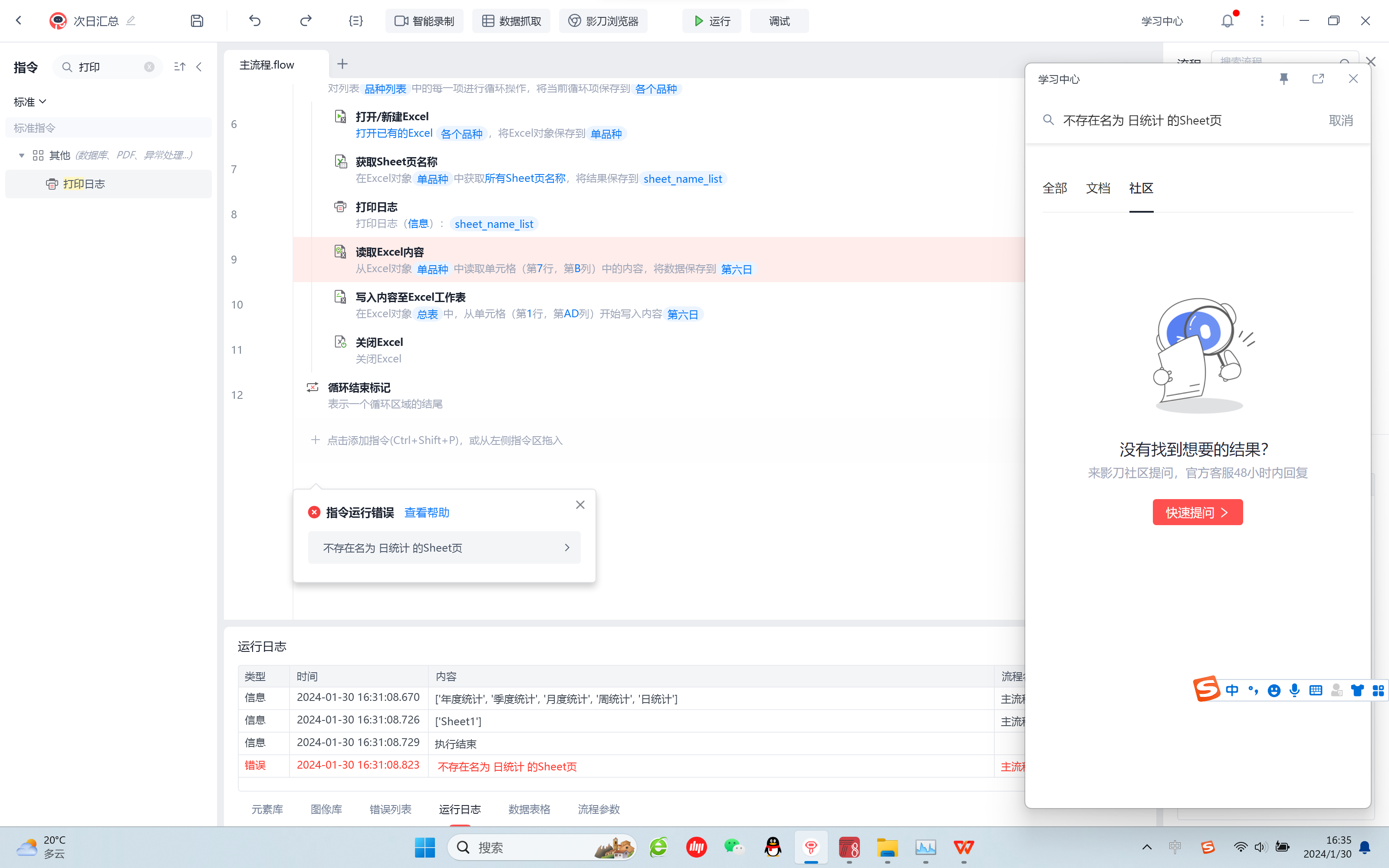 老师好,我表格里有这个名为日统计的sheet页,打印日志也能打印出来,但是读取不出来