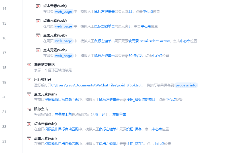 目前编写的流程大致是这样,怎样才能从第6步到最后一步实现循环,让表格内的所有名字逐个全部完成检索