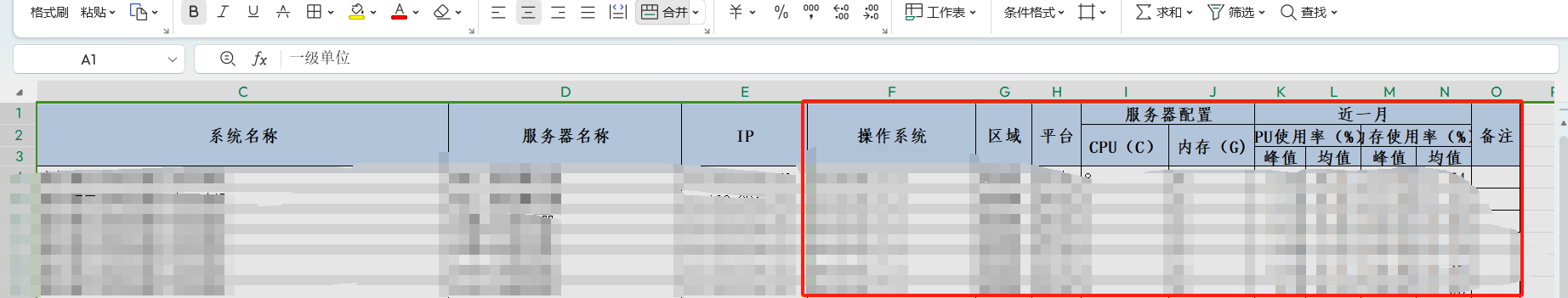Excel表格区域截图,右侧有一部分是白色空白的,实际Excel表格的截图区域有数据