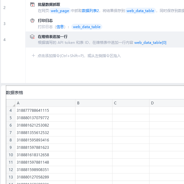 批量抓的数据是这样一列的,有什么办法能直接整列写入维格表呢