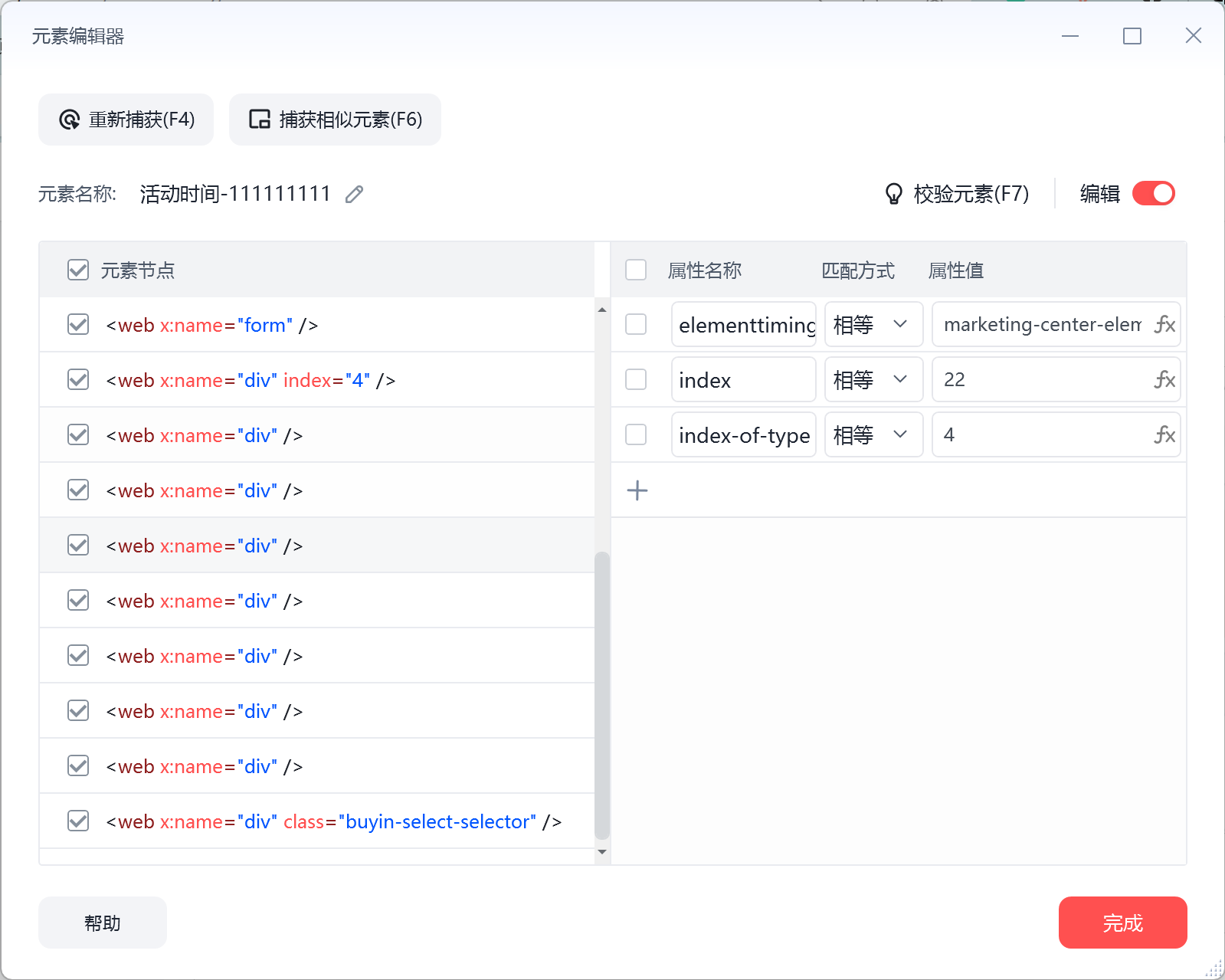 尝试过关联相似元素但是这个没法关联,需要鼠标点击之后才可以识别到这个元素