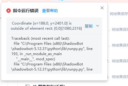 xbot.errors.UIAError: Coordinate [x=188.0, y=2401.0] is outside of element rect: [0,0][1080,2316]