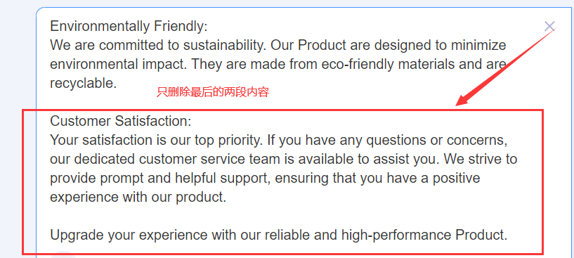 因为不同的产品描述不一样,但是最后两段相对别的没有那么重要,所以可以删除,怎么样做一个通用性脚本呢?不管产品描述的最后两段是什么,都删除最后两段内容。比如下面这种