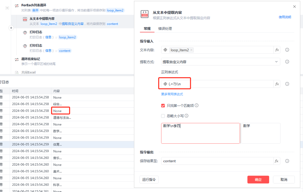 这种换行的正则表达式要如何写?比如“语文\n张三”,只提取“语文”