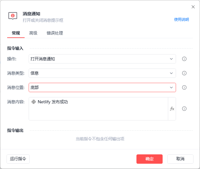 在编写脚本界面运行,消息通知位置设置有效果,但保存脚本在外面运行,消息都是在顶部,我目前写过的几个脚本都是这样。