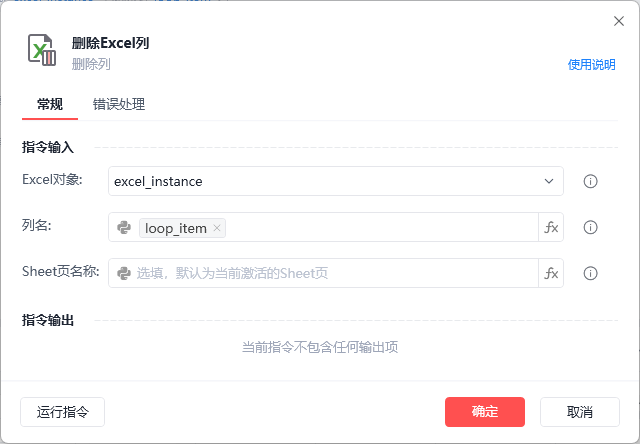 xbot_visual.excel.remove_column(workbook=excel_instance, column_name=loop_item, sheet_name="", _block=("子流程1", 4, "删除Excel列"))