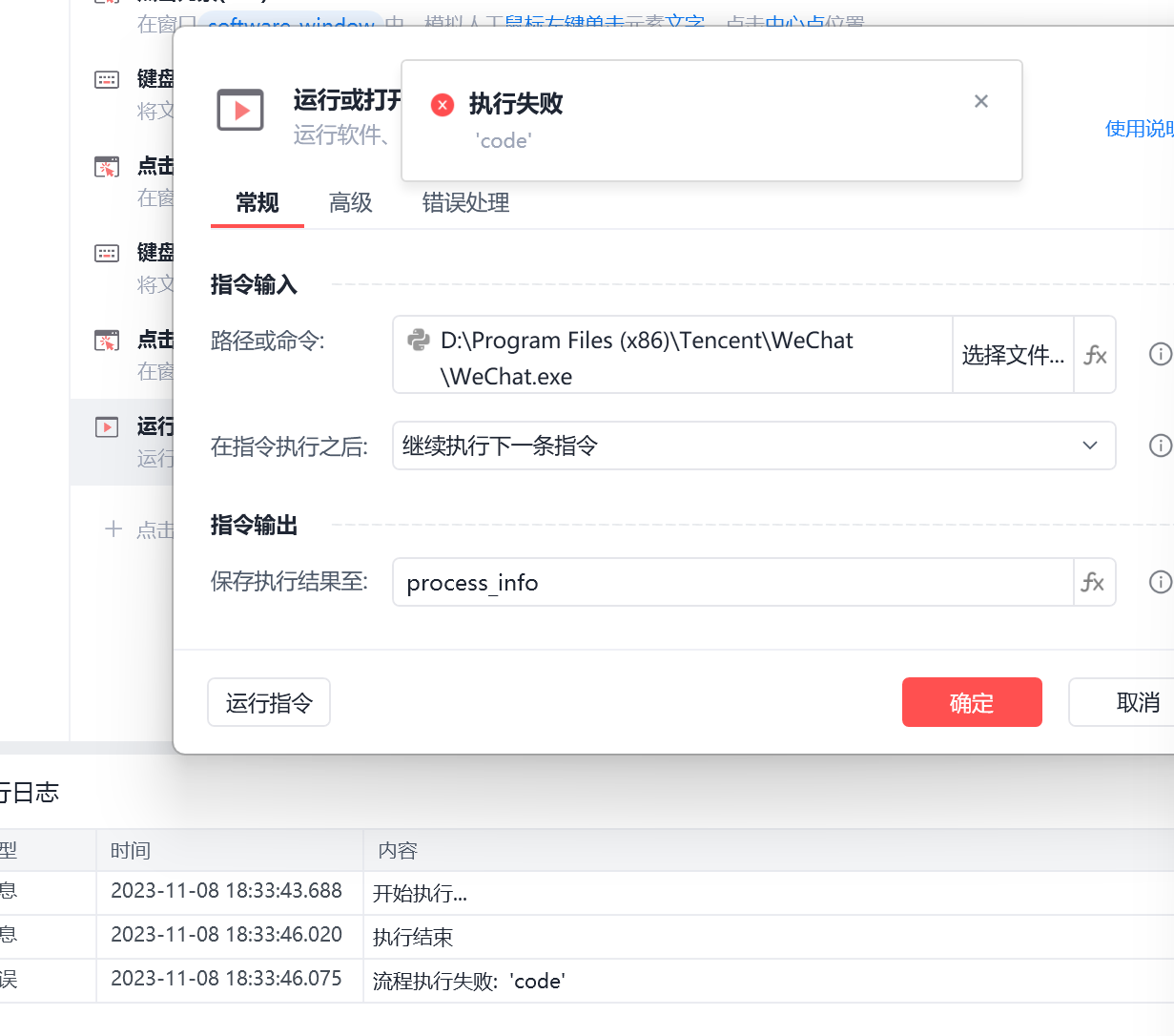 打开微信,执行失败,‘code'