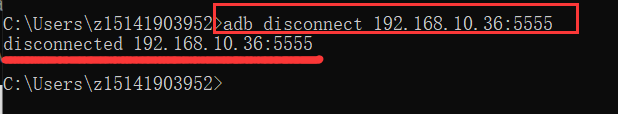 在命令窗口中输入:adb disconnect 你的手机ip:5555