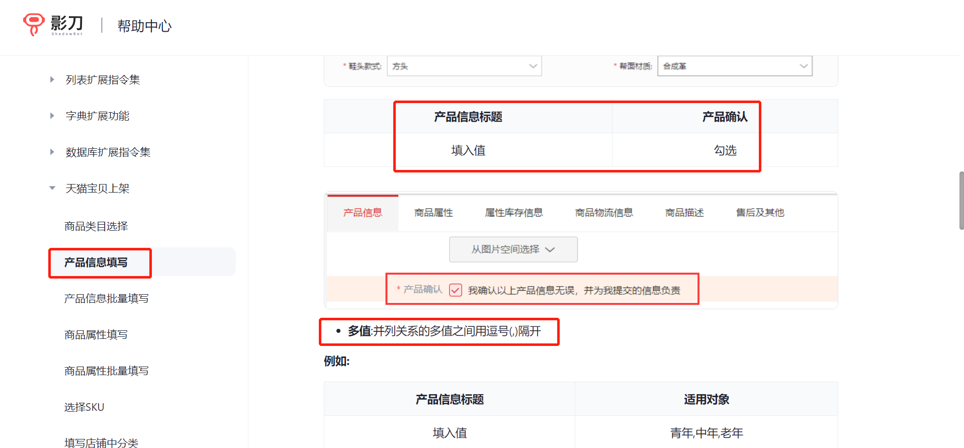 在自定义指令-天猫宝贝上架-产品信息填写这个功能中,对于产品信息标题内容为多值且是勾选项,按照示例填写后运行,实际并没有选择相应的值,导致提交新品创建ID时提示该产品信息为空