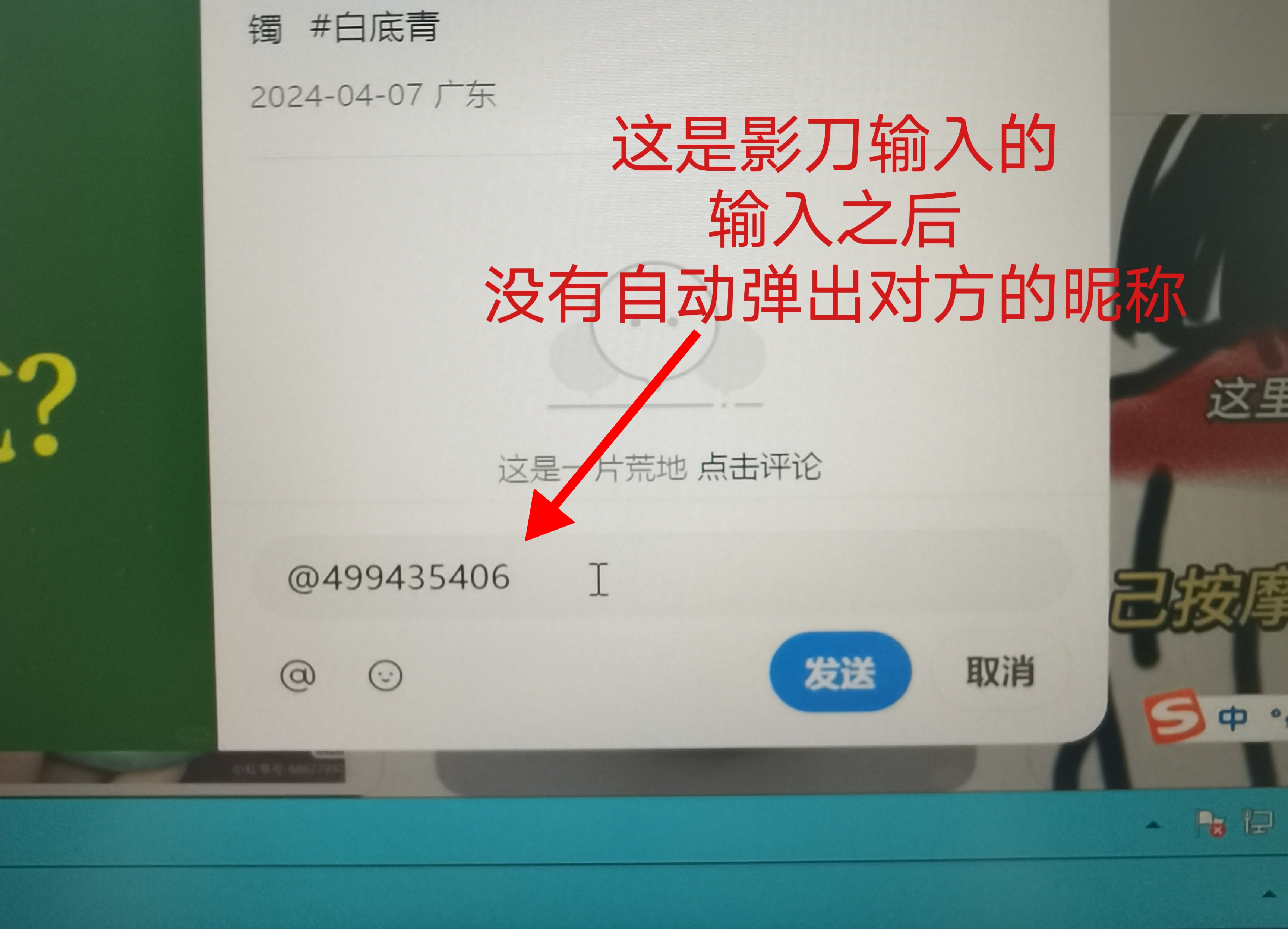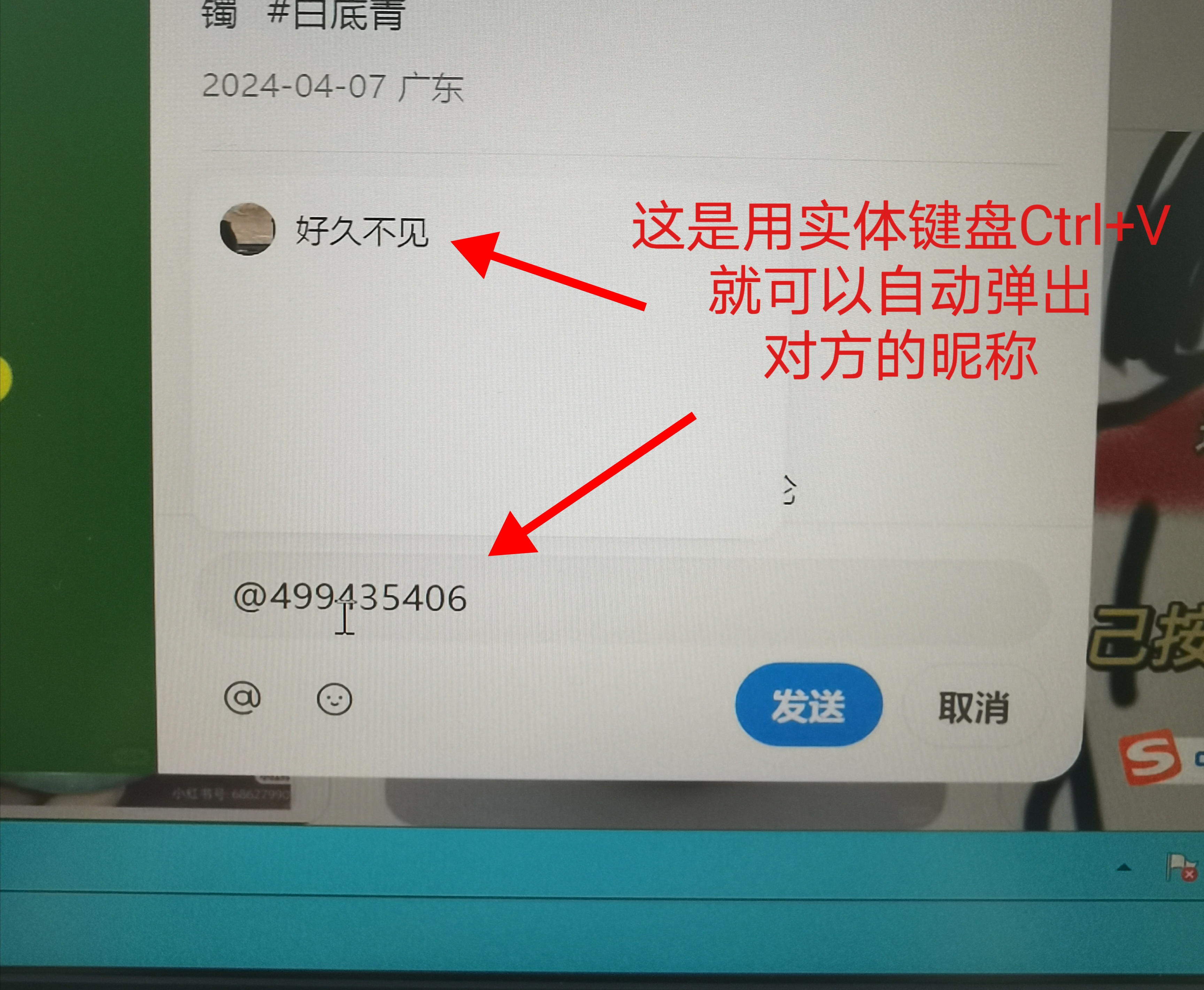 现在的问题是,我用电脑键盘的ctrl+V粘贴,把@666666粘贴到评论区,就可以弹出对方的昵称。