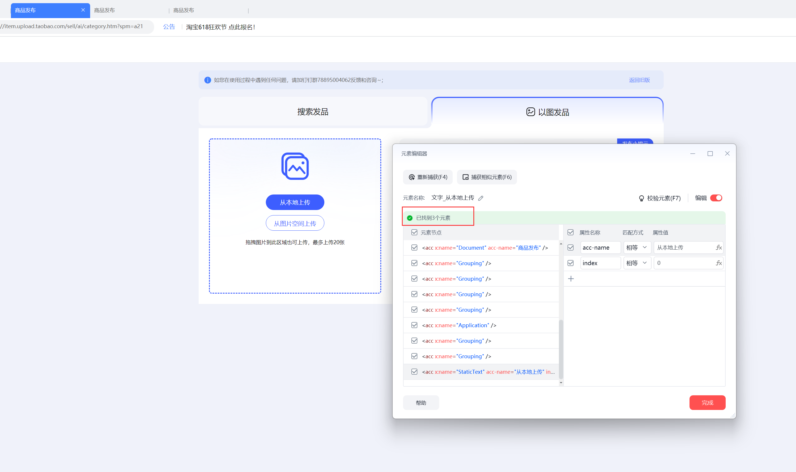 千牛上货,匹配到多个元素, 无法唯一定位