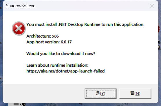 没有更新突然就不能用了,提示显示如下图内容,但是我已安装最新.NET,依然无法解决