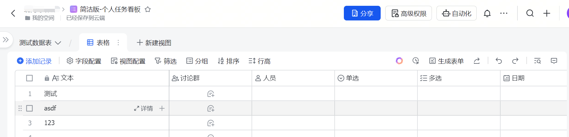 字段:多维表格的表头