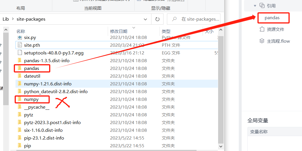 比如 pandas 依赖 numpy,安装pandas时,会安装numpy, 但引用关系中不显示numpy,如下: