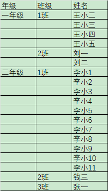数据表如上图,现在需要读取年级后,再输入班级,最后输入姓名。如何才能在王小二后,继续输出王小三?