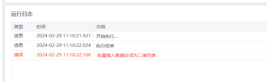 插入数据库时报错请使用二维数组