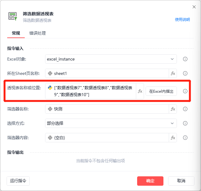 我在进行透视表筛选中想对表格内的多个数据透视表同时筛选一个值,但是运用变量也无法选中多个数据透视表,请问要怎么解决?