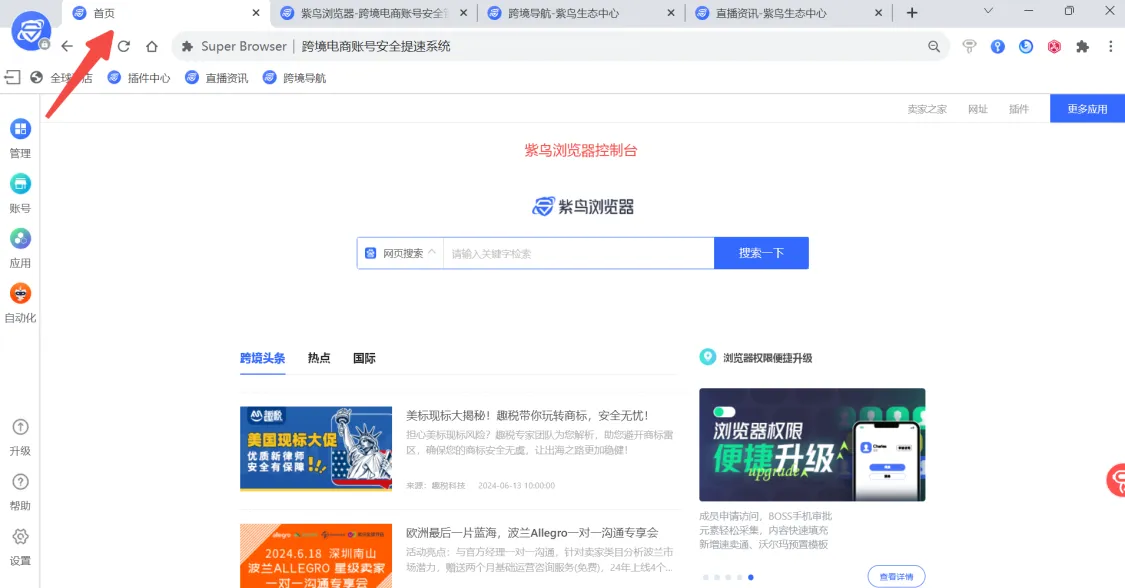 帖子有提到紫鸟浏览器实际上是有两个窗口的,一个是紫鸟浏览器控制台(SuperBrowser ),一个是紫鸟浏览器(superbrowser );