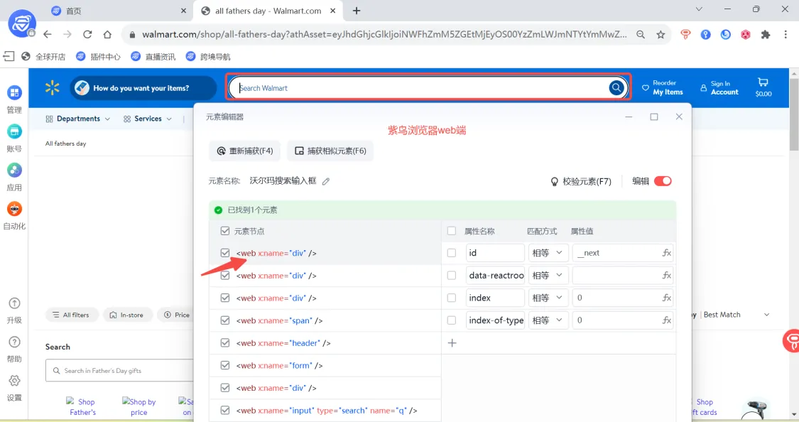 紫鸟浏览器才是浏览器的网页端,捕获到的元素是web元素,网页自动化操作。