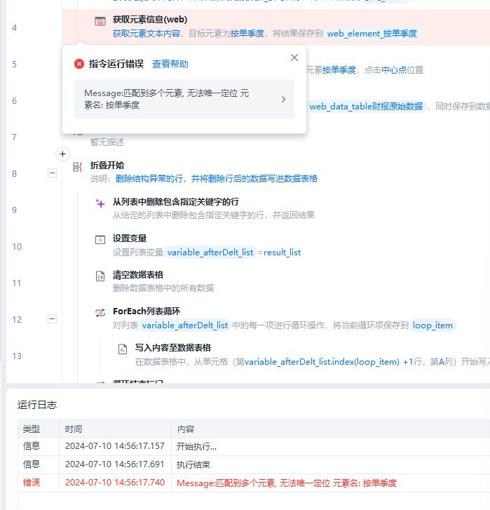 在使用网页进行 “捕获元素--点击元素” 来模拟点击按钮操作时,捕获元素提示匹配到多个元素,无法唯一定位的报错。