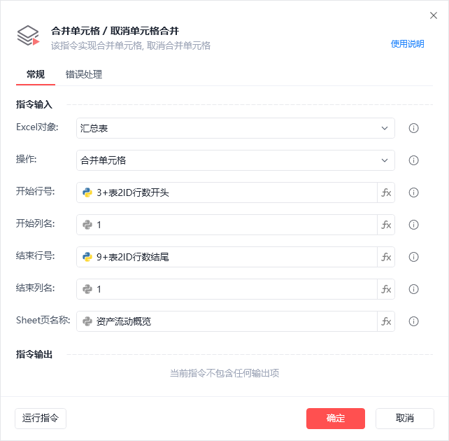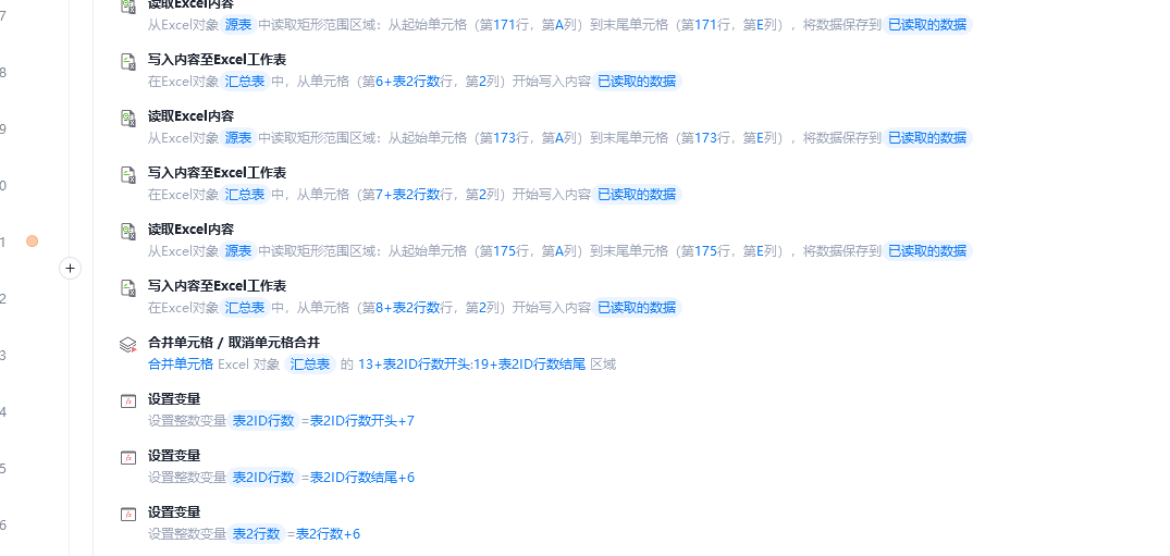 整体的应用场景是从A表格的子表挑数据出来放到B表格的汇总表,整体程序已经完成了大半,但是有一个搬运过程中需要对几个单元格进行合并;但是一直合不准