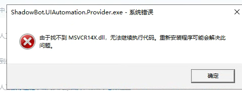 无法运行所有流程,提示由于找不到 MSVCR14X.d,无法继续执行代码。重新安装程序可能会解决此 问题。