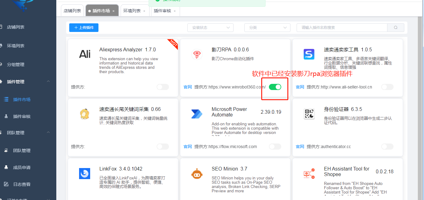 指纹浏览器中,每个浏览器已经添加影刀RPA扩展程序