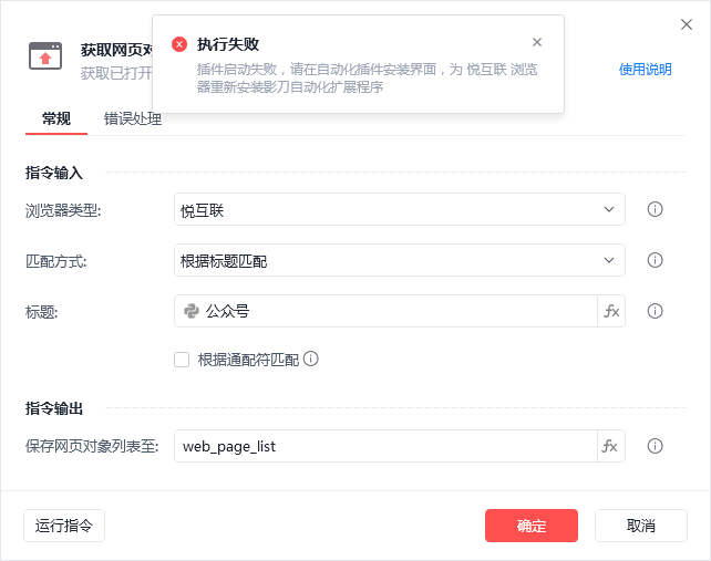 在影刀中执行获取网页对象列表指令,提示需要重新安装插件。但我已经试了四五次,一直都是需要重新安装。