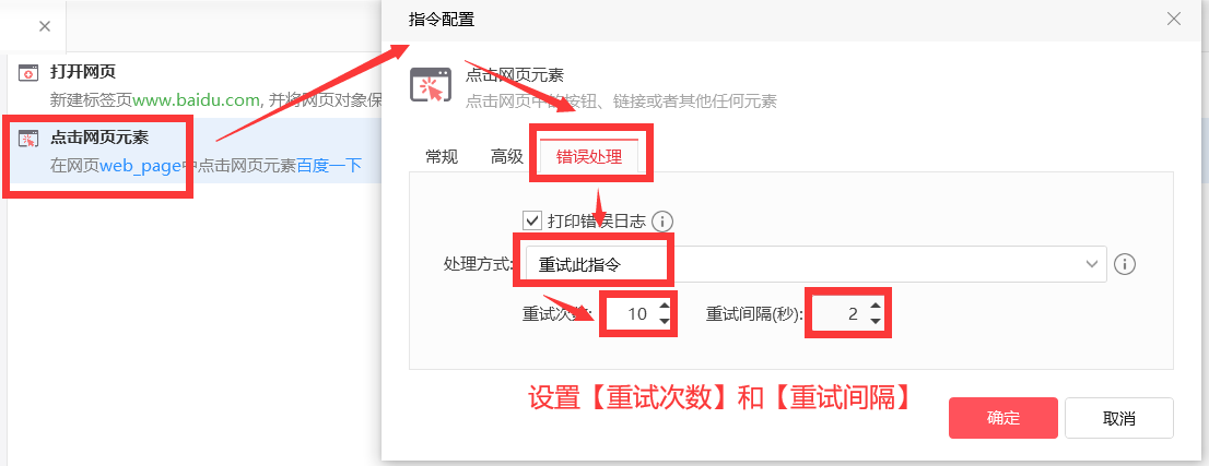 如果执行出错,就按照设定的次数和间隔重复执行此指令。