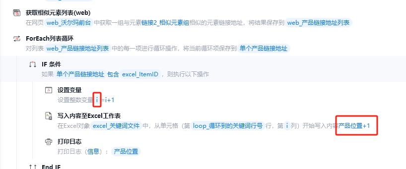 我为了查询目标在列表中的位置,我用ForEach循环列表中的网址,并用if判断目标ID是包含在网址中,并输出“位置”到EXCLE中。