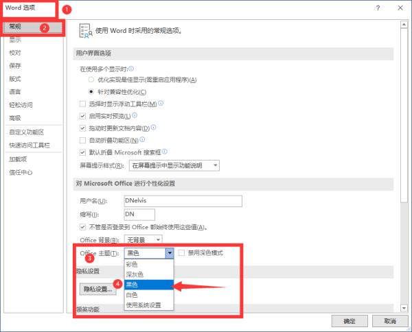 2019家庭学生版的话,你可以依次点击:文件-选项-显示-office主题-黑色,达成以前的深色模式效果。