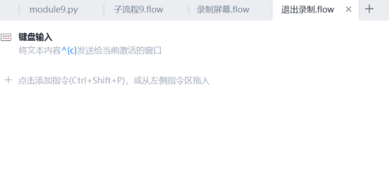 2.创建一个退出录制的流程,其中的使用键盘输入的指令输入Ctrl+C,保证录制可以在任何位置退出。