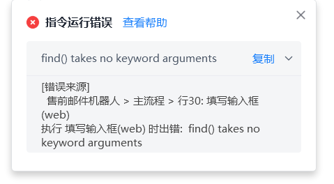 find() takes no keyword arguments,校验元素能找到元素,还在输入前点击了输入框,但依旧报这个错
