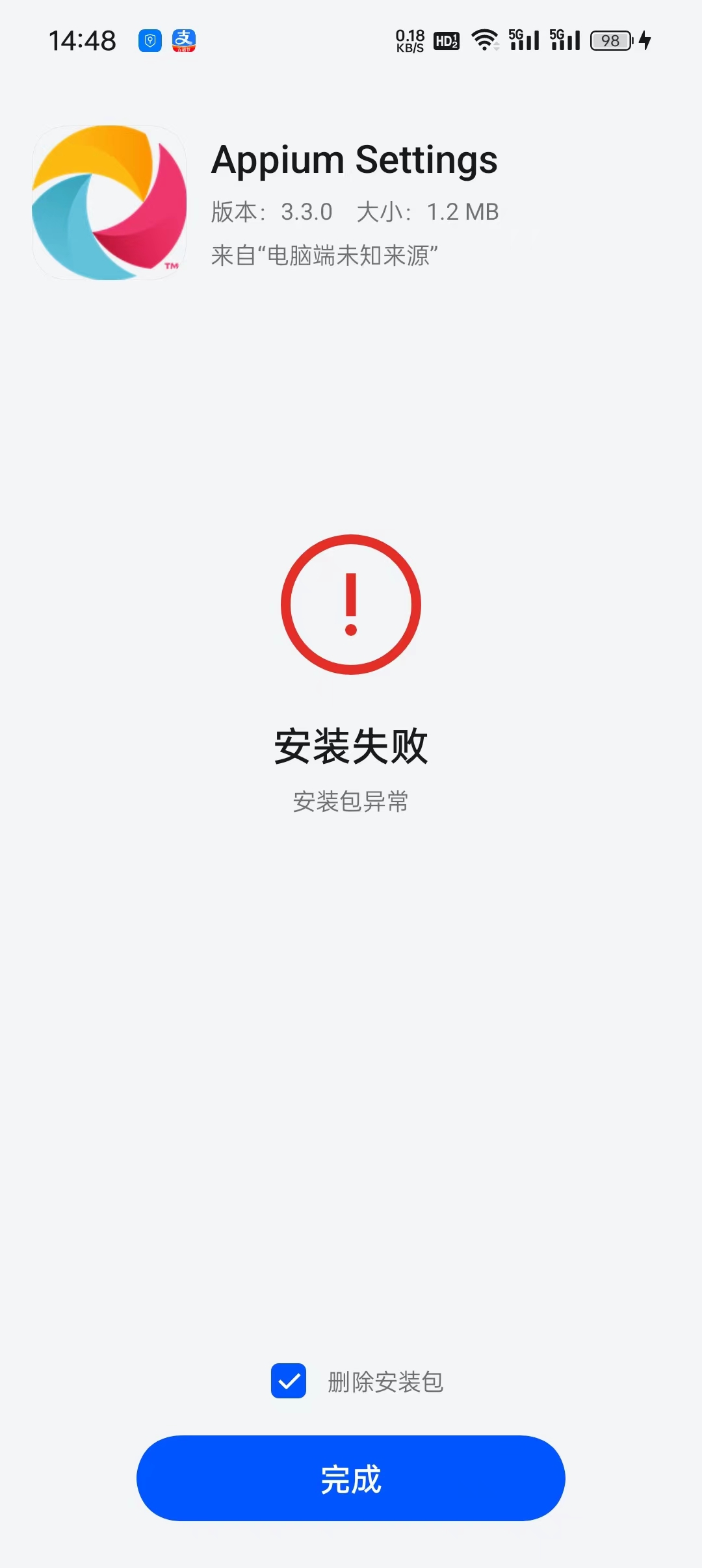 手机连接失败,提示appium settings安装失败,怎么办啊
