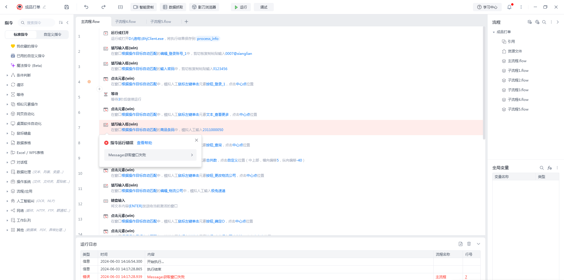 问题描述:在自己的电脑开发RPA流程,换了另一台电脑,账号密码登录输入后密码输入错位,未找到元素,获取窗口失败。