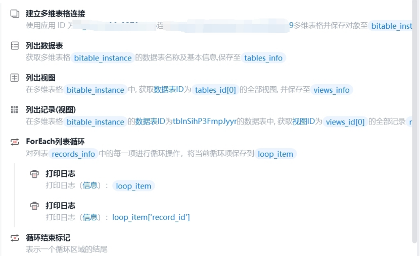 ④ 使用“列出记录(视图)”指令列出对应记录