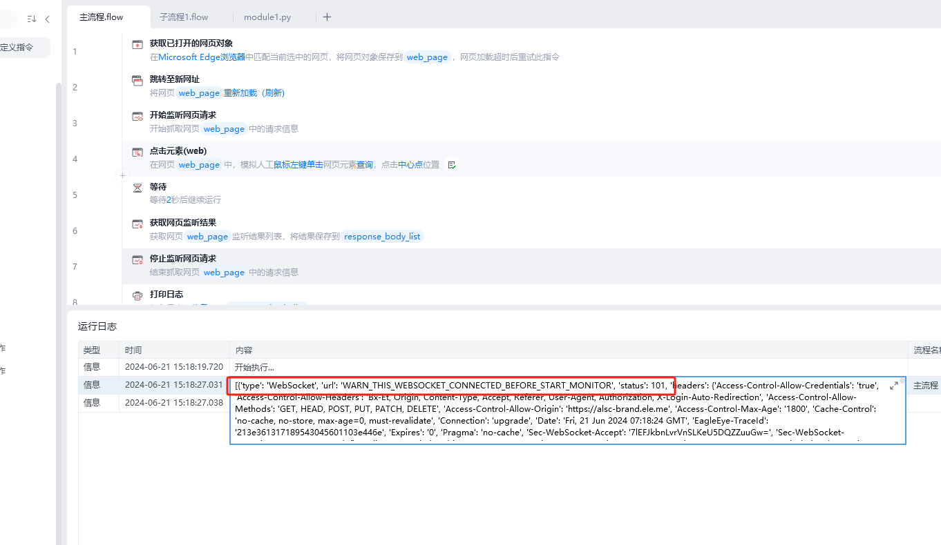影刀如何监听websocket,这个问题搞了好久没解决。提示websocket在开始监听前已经连接了,啥意思啊?