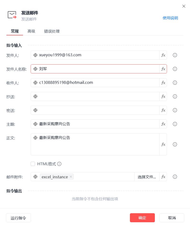 发送邮件的时候,提示[错误] [2023-02-17 10:18:45.216] 【主流程】中第【8】条指令出错